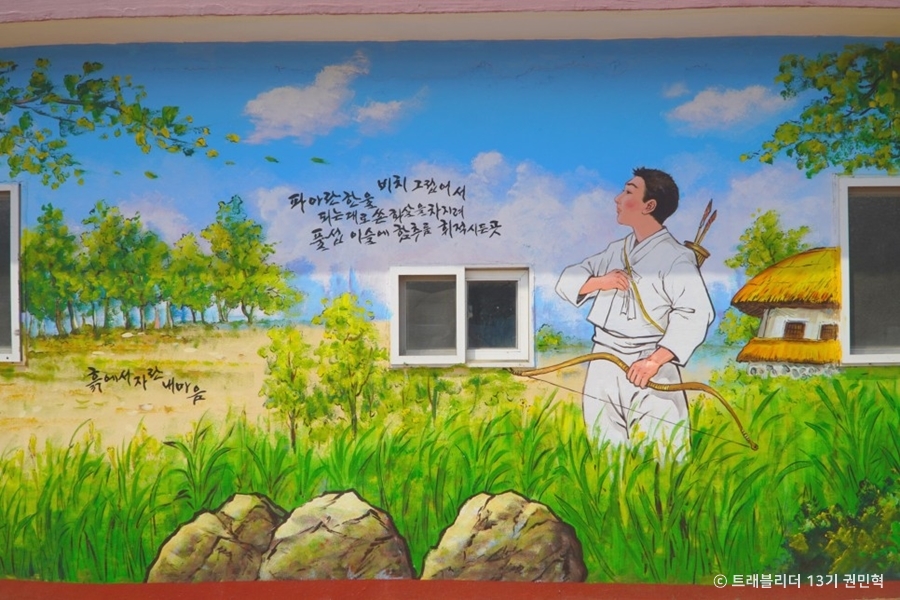 구읍은 옥천의 옛 중심지로, 지금의 옥천읍 죽향리와 상계리, 하계리, 교동리, 문정리 일부를 가리키는 주민들 사이의 고유명사다. 그 가운데서도 구읍 벽화마을은 <향수>의 시인 정지용이 태어난 하계리에 자리한다. 마을 담벼락마다 시인의 작품을 형상화한 그림들이 그려져 있는데, 정겨운 시골 풍경을 아름다운 언어로 담아냈던 시인인 만큼 하나같이 눈과 마음을 편안하게 만들어준다. 누군가에겐 고향에 대한 그리움을, 누군가에겐 순수했던 어린 시절의 추억을 떠올리게 한다. <향수>를 연상하게 하는 실개천과 평화로운 마을 풍경도 걷는 내내 힐링과 여유를 선사한다. 마을 한가운데 정지용 생가와 문학관도 자리해 함께 둘러보기 좋다. 해마다 이곳 마을을 배경으로 ‘지용제’도 열린다.