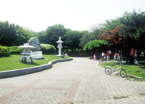 동산에는 여러 가지 조형물을 비롯해 체육 시설, 생태관찰원, 산책로 등이 마련되어 있다.