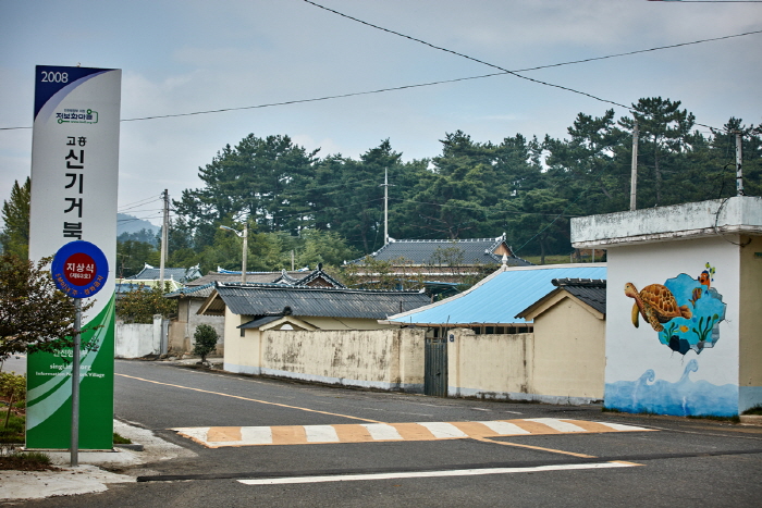 신기거북이 마을은 넓은 들판과 야산으로 둘러싸인 전원과 청정 바다가 어우러져 흙냄새, 풀냄새, 바다 내음이 물씬 풍기는 전형적인 농어촌 마을로, 마을 앞 청정 갯벌 양식장에서는 고막, 바지락, 낙지, 전어 등 다양한 해산물이 생산되고, 농경지에서는 친환경 인증(저농약)을 획득한 셀레늄 마늘과 참다래,완두콩, 쌀, 콩, 참깨 등 다양한 농산물이 생산되고 있다. 해안에 우리나라에서 보기 드문 지층, 단층대가 형성되어 있어 지층. 단층 학습 체험을 할 수 있고, 나로우주센터가 있는 우주 항공의 고장에 맞추어 물로켓 제작 및 발사, 별자리 관찰 등의 학습 체험, 그리고 건강 마늘 캐기 체험, 고구마 캐기 체험 등의 농촌 체험을 비롯하여 마을의 청정 해역의 갯벌을 이용한 고막, 바지락 캐기 바지낚시, 갯벌 체험 등 다양한 농어촌 체험거리가 있는 마을이다. 또한, 신기거북이마을은 녹색농촌체험마을, 어촌체험마을, 정보화마을, 농촌마을종합개발사업, 팜스테이 마을, 행복마을 등 다양한 사업을 유치하여 마을을 찾은 관광객들에게 다시 찾고 싶고 머무르고 싶은 전원 마을로 거듭나고 있다.