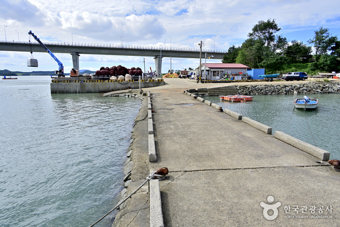 무안 성내리에 있는 자그마한 도원 선착장은 아름다운 일몰과 김대중 대교의 야경을 함께 감상할 수 있는 명소다. 평소에도 잔잔한 해수면 덕에 방파제는 물론 바다 위에서 좌대 낚시를 즐기는 이들도 많다. 낚시선착장에서 배를 타고 2~3분만 가면 해상 위에 둥둥 떠 있는 이글루 모양의 독특한 해상 펜션을 볼 수 있다. 정겨운 어촌 마을의 풍취와 고즈넉한 매력에 연인, 가족 단위뿐만 아니라 1인 낚시꾼들도 즐겨 찾는 곳이다. 주차장이 넓고 선착장 주변에 편의 시설이 마련돼 있어 차박 하기에 좋다.