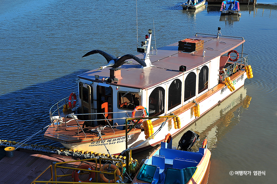 순천만 생태체험선은 드넓은 갯벌과 갈대 군락, 다양한 철새·물새를 가까이에서 볼 수 있는 선상 투어 생태체험선이다. 순천만습지 안에 있는 대대 선착장에서 출발해 화포로 이어지는 수로를 따라 순천만 S자 갯골까지 갔다 돌아오는 왕복 6km 구간을 운항하는 이 배를 타면, 드넓은 갯벌과 갈대군락에 서식하는 철새들을 가장 가까이서 구경할 수 있다. 생태체험선을 타면 바람을 맞으며 시원하게 순천만 습지의 아름다움을 아주 가까이에서 느낄 수 있다. 검은머리갈매기, 노랑부리저어새 등 희귀 조류와 철새들을 아주 가까이서 관찰할 수 있고 고니나 흑두루미는 물론 흰 뺨 검둥오리, 청둥오리 등이 무리 지어 있는 모습을 바로 옆에서 볼 수 있다. 곳곳에 숨어있는 철새들과 물새들을 보며 여기저기 있는 철새와 물새를 찾는 재미는 생태체험선의 큰 묘미 중 하나다. 물가 주변뿐 아니라 나뭇가지 위에도 마치 조형물처럼 새들이 숨은 것을 발견할 수 있다. 체험선 안엔 앉을 수 있는 의자들이 많이 놓여있어 배 안에 앉아 탐사를 즐겨도 되고, 탁 트인 선상에서 구경해도 좋다. 소요 시간은 왕복 30~35분인데, 해설사가 동반해 순천만의 생태계에 관한 생생한 이야기를 들을 수 있어 유익한 시간을 보낼 수 있다.