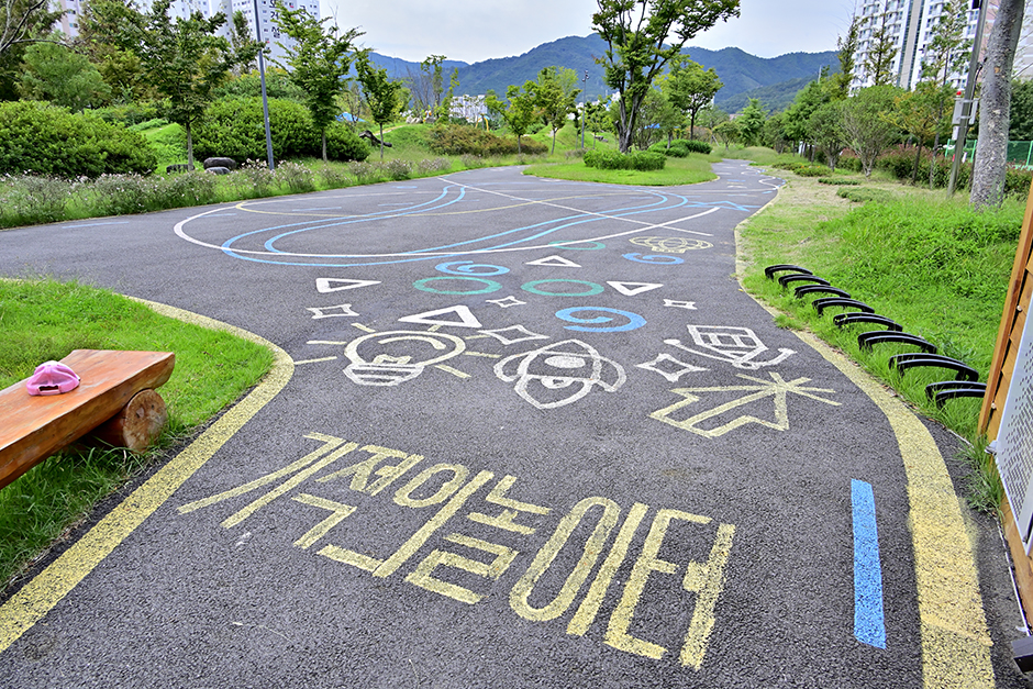 순천 기적의 놀이터 3호의 다른 이름은 ‘시가모노’다. 얼핏 들으면 일본에서 빌려온 이름처럼 들리는데, ‘시간 가는 줄 모르고 노는 놀이터’의 약자다. 아파트 사이를 흐르는 동천의 천변에 길게 자리한 놀이터로 놀이터에 들어서자마자 킥보드와 밸런스 바이크를 탈 수 있는 곡선형 아스팔트 길이 나온다. 그 주변으로 모래 놀이터가 있고 가장 인기 있는 짚라인도 있다. 안쪽으로 조금 더 들어가면 그네 놀이터와 체력 단련용 액티비티 시설이 나온다. 유아들이 탈 수 있는 보호대가 있는 그네부터 2인용 그네, 원형 바구니처럼 생긴 다인용 그네도 있다. 바닥에는 모래가 깔려 있어서 완충 역할을 한다. 조금 더 내려가면 아이들이 안전하게 인라인스케이트를 탈 수 있는 스케이트장이 나온다. 놀이터 근처에는 강천 수변 공원이 있는데 놀이가 끝나고 집으로 돌아가는 길에 잠시 들러 산책하기 좋다.