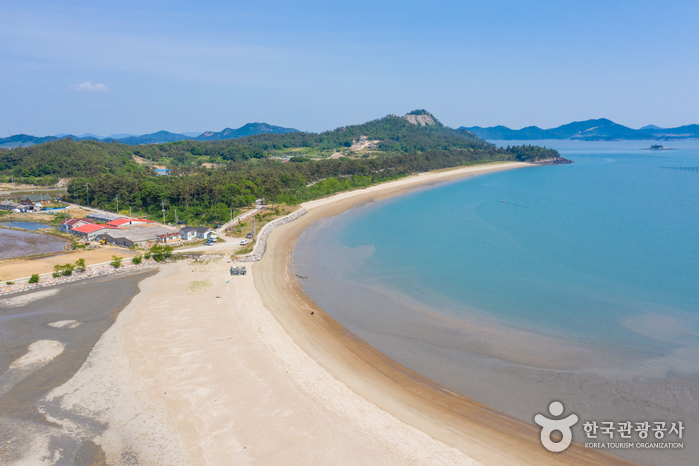 다도해 해상국립공원지역으로 산과 섬들에 둘러싸여 아늑하기 그지없고, 다도해 주변의 아름다운 풍경을 감상하고 여행의 즐거움과 의미를 느낄 수 있다. 산과 바다, 바위, 수풀, 모래사장이 어우러져서 신비하고 아름다운 쳔혜의 환경이 조성되어 있는데, 그 형상이나 이미지가 하나의 ‘하트모양’이라고 해서 붙여진 이름이다. 해변의 모양도 아름답지만 코발트 블루의 바닷물 빛도 환상적이다.