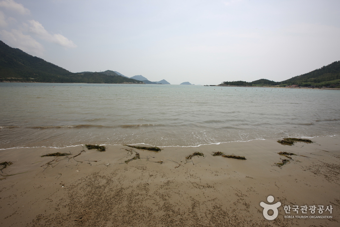 다도해 해상국립공원지역으로 산과 섬들에 둘러싸여 아늑하기 그지없고, 다도해 주변의 아름다운 풍경을 감상하고 여행의 즐거움과 의미를 느낄 수 있다. 산과 바다, 바위, 수풀, 모래사장이 어우러져서 신비하고 아름다운 쳔혜의 환경이 조성되어 있는데, 그 형상이나 이미지가 하나의 ‘하트모양’이라고 해서 붙여진 이름이다. 해변의 모양도 아름답지만 코발트 블루의 바닷물 빛도 환상적이다.