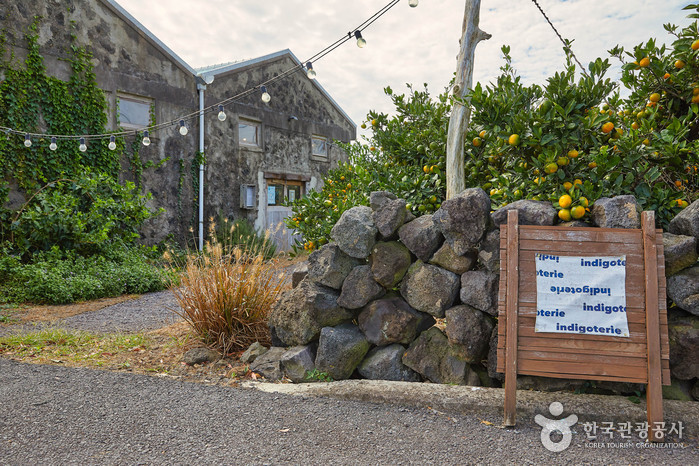 인디고트리는 오래된 귤 창고를 카페이자 편집샵으로 개조한 곳으로 곳곳이 돌로 꾸며져 투박하면서도 빈티지한 멋이 느껴지며, 건물 외관은 제주도 본연의 모습이 느껴진다. 카페 메뉴 중 제주도 특산품인 귤로 만든 에이드와 차는 산지의 귤을 바로 사용한 신선하면서도 새콤한 맛이 특징이다.