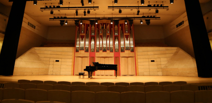 본 홀의 음향설계는 일본 동경 산토리홀을 담당한 나카다 음향이 고안했으며 인테리어는 Forte사가 설계하였다. 무대는 무대막(House Curtain)이 없는 아레나형이며 벽면은 크리마마필 대리석으로 꾸며 고급스러운 분위기를 연출하였고 홀의 바닥은 오크플로링을 사용하여 아늑함을 더했다.홀의 의자는 음향효과를 최대한 살리기 위해 제작되었고 장시간 앉아 있어도 편안함을 느끼도록 설계되었다.