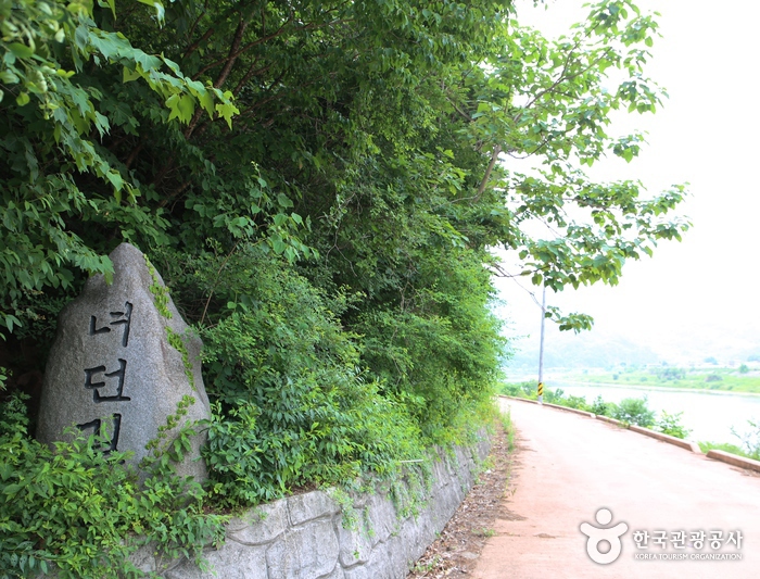 퇴계의 시가 있으며, 강변 너럭바위에는 시조새, 공룡 등으로 추정되는 발자국 화석이 대량으로 찍혀있다.