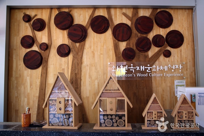 화천목재문화체험장은 우수한 화천의 목재를 활용해 나만의 생활가구나 목제품을 만들 수 있는 목공예 체험장이다. 아이들에겐 신나는 나무놀이터, 어른들에겐 목공예에 더욱 많은 지식을 쌓을 수 있는 전문 공방으로써 손색이 없다. 동그란 건물외관은 켜켜이 쌓은 나무 마감재로 따스한 느낌을 전해준다. 1층에는 목공예를 할 수 있는 DIY 체험장이 운영되고 있다. 아이들 가구, 책꽂이, 독서대, 나무스피커, 수제나무도마 등 원하는 제품을 직접 만들어 볼 수 있다.