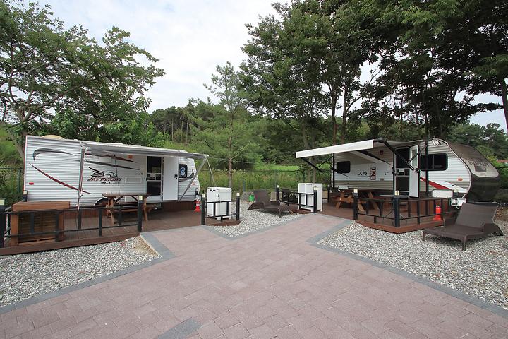 - 카라반 : 7면 ( 내부시설 : 침대,TV,에어컨,냉장고,유무선인터넷,난방기구,취사도구,내부화장실)