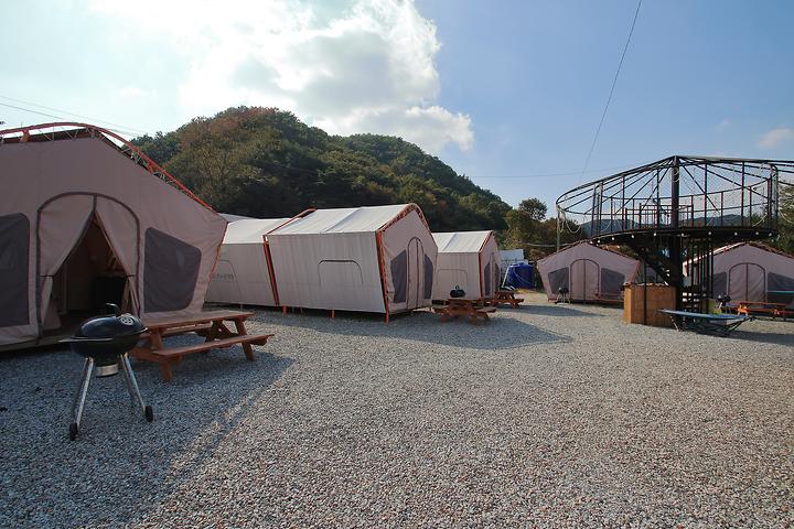- 글램핑 : 12면 ( 내부시설 : 침대,TV,에어컨,냉장고,유무선인터넷,난방기구,취사도구,내부화장실)