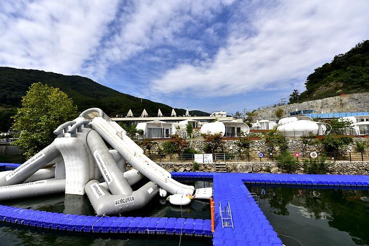 경기도 가평군 청평면 청평호에 위치한다. 글램핑장은 청평호 조망이 가능하도록 설계되어 있고 동일업체가 운영 중인 수상레저를 포함한 고급 대단위 글램핑 시설이다 청평면 시내에서 접근이 쉬우며 최근 가평대교 개통으로 대도시 인접 접근성이 용이한 고급스런 글램핑 시설이다. 청평역을 이용한 대중교통 수단으로 접근이 가능하고 호명산, 새덕산 등이 접해있어 호수와 숲을 품은 휴양시설로 4계절 아름다운 경치를 감상 할 수 있다. 연계 관광코스로는 아침고요 수목원과 인근 쁘띠프랑스가 있다. 글랜핑 사이트는 28동으로 가각 타입별로 특징적인 시설을 하고 있으며 레져 시설과 함께 묶은 패키지 상품도 이용할 수 있다. 글램핑 사이트는 국제 디자인 어워드인 레드닷 어워드 등 유수 디자인상을 2016, 2017년 연속 수상하는 등 독특함과 함께 미학적인 아름다움을 고객이 편하게 쉴 수 있도록 기능과 안전성을 중시하고 있다. 사이트 내 이용시설 구성품 및 내부 샤워실 청결상태 양호하다.