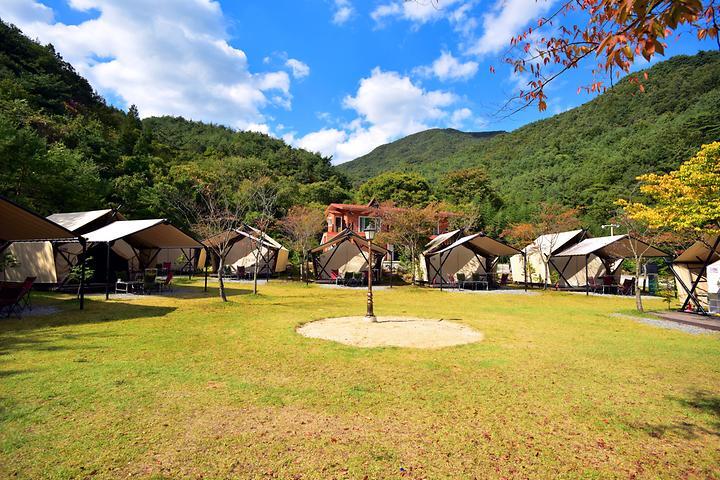 - 글램핑 : 21면 ( 내부시설 : 침대,TV,에어컨,냉장고,유무선인터넷,난방기구,취사도구,내부화장실)