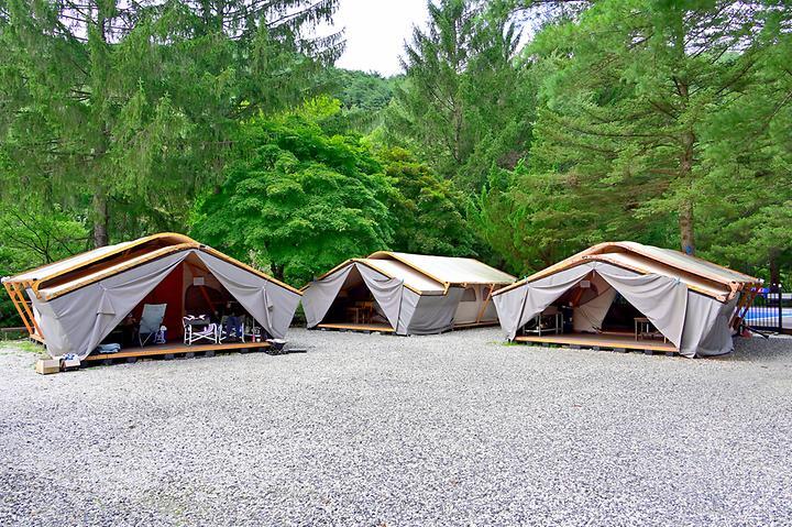 - 글램핑 : 12면 ( 내부시설 : 침대,TV,에어컨,냉장고,유무선인터넷,난방기구)