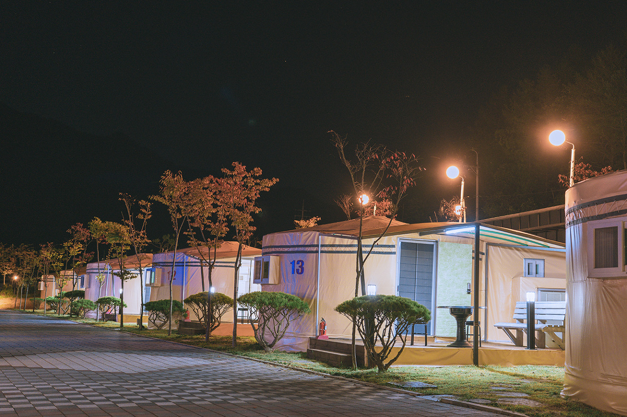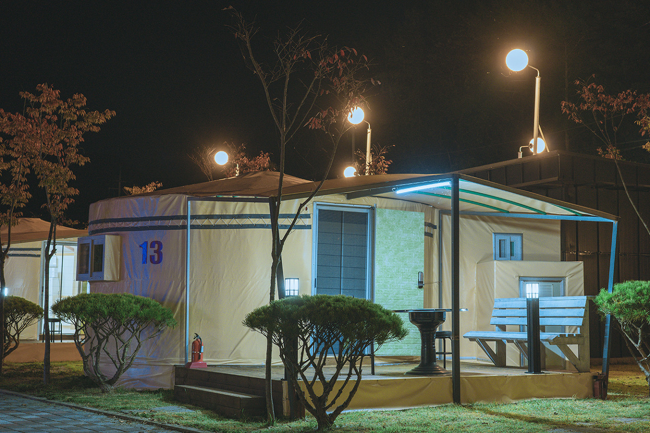 - 글램핑 : 14면 ( 내부시설 : 침대,TV,에어컨,냉장고,유무선인터넷,난방기구,취사도구,내부화장실)