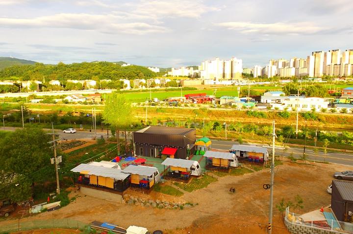 캠핑하우스는 충남 천안시 동남구에 자리 잡고 있다. 천안시청을 기점으로 자동차를 타고 시청로, 불당대로, 중부로, 용곡1길을 차례로 거치면 닿는다. 도착까지 소요시간은 20분가량이다. 도심 속에 위치한 캠핑장이지만, 도시의 번잡함은 느낄 수 없다. 마치 숲속에 있는 듯한 착각이 들 정도다. 캠핑장에는 카라반 5대를 마련했다. 객실 내부에 침대, 티브이. 냉장고, 소파, 식기류, 취사도구, 개수대, 화장실, 샤워장 등이 있어 일상생활이 가능할 정도다. 외부 전용 데크에는 그늘을 만들어 주는 어닝 아래 바비큐 시설을 설치했다. 이곳은 하루를 묵지 않고 잠깐 놀다 갈 수도 있다. 이 경우 3시간에 6만원이다. 외부음식과 주류 반입을 허용하기 때문에 먹을거리만 사가면 된다. 이마저도 귀찮다면 캠핑장에서 준비한 음식과 주류를 구입하면 편안한 캠핑을 만끽할 수 있다.