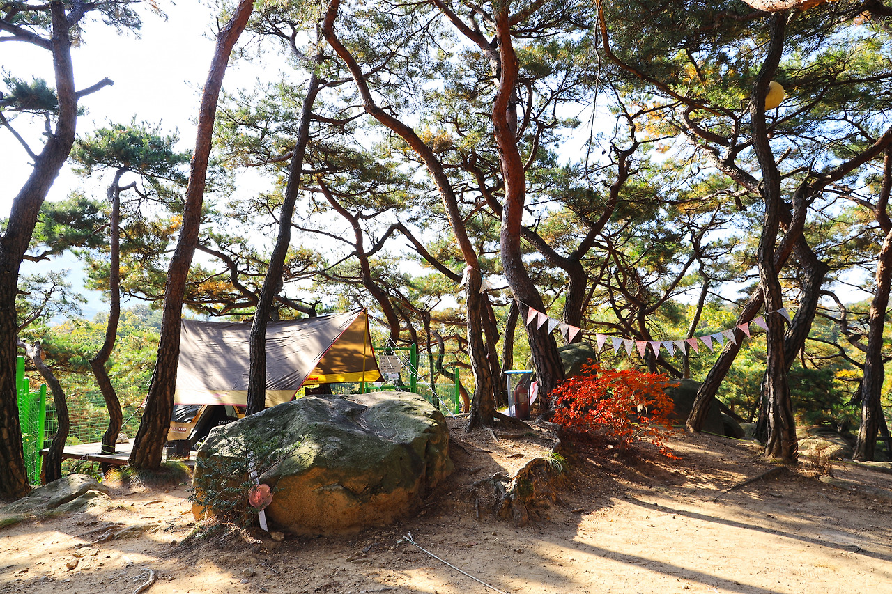 북한산이 바라다 보이는 노고산 자락에 위치하고 있다. 나지막한 산 봉우리 구석구석 사이트가 숨겨진 듯 자리잡고 있다. 기암괴석과 사이사이의 키 큰 소나무가 울창하게 자라 있어, 전망과 그늘만으로도 최상의 야영조건을 제공한다.