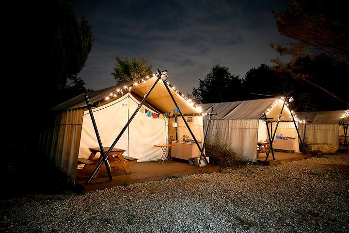 - 글램핑 : 5면 ( 내부시설 : 침대,에어컨,냉장고,유무선인터넷,난방기구,취사도구)