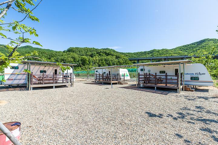 - 카라반 : 3면 ( 내부시설 : 침대,TV,에어컨,냉장고,유무선인터넷,난방기구,취사도구,내부화장실)