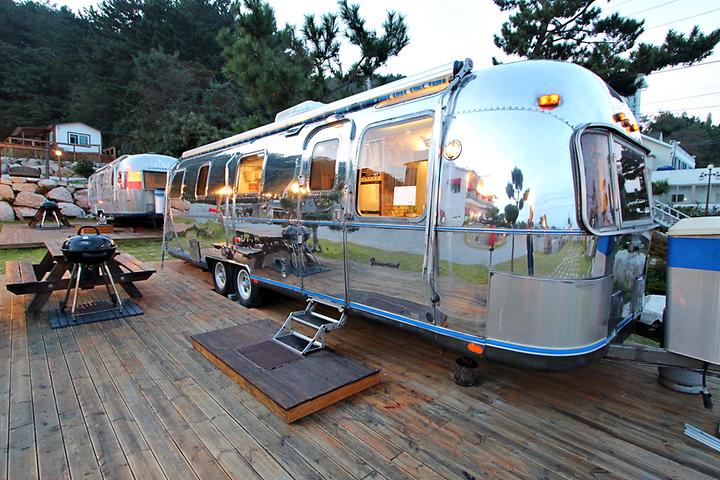 영덕 더스트림 카라반은 경북 영덕군 강구면에 자리했다. 영덕군청을 기점으로 6Km가량 떨어졌다. 자동차를 타고 군청길, 하저길, 영덕대게로를 차례로 거치면 닿는다. 도착까지 걸리는 시간은 10분 안팎이다. 캠핑장은 영덕의 대표 관광지 가운데 하나인 하저해수욕장 인근에 터를 잡았다. 캠핑장에는 카라반 2대가 캠퍼를 반긴다. 카라반 외에 펜션 객실이 9개가 있어서 선택의 폭이 넓다. 카라반은 에어 스트림으로 외부와 내부에서 느껴지는 럭셔리함이 특징이다. 객실 내부에는 대, 침구류, 소파, TV, 냉장고, 에어컨, 식기류, 취사도구, 개수대, 화장실, 샤워실 등이 있어 일상생활이 가능할 정도다. 무엇보다 카라반 2대 모두 바다 전망이라는 점. 동해의 수려한 풍경을 한눈에 담으며 잊지 못할 추억을 만들기 제격이다.