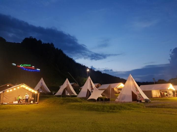 - 특징 : -럭셔리 글램핑 (10동) / 그래픽 TP텐트 (4동) 글램핑 내부시설 -트윈침대, 에어컨, 냉장고, 블루투스 스피커,취사도구, 조리도구, 옷걸이, 스텐트조명, 야외바베큐 그래픽 TP텐트 -트윈에어매트, 에어컨, 냉장고, 취사도구, 조리도구, 옷걸이, 야외바베큐