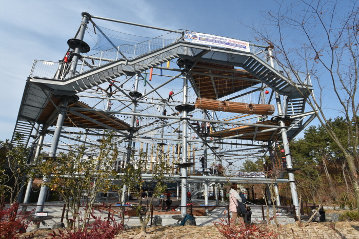 - 코스개요 : 통영 어드벤처타워는 최대 높이 15m의 국내 최초, 최대 규모의 레포츠, 놀이 시설이며 난이도가 다른 96개의 코스로 다양한 즐거움을 느낄수 있다. 또한 유럽안전규격(EN15567)의 안전성 인증을 받았기에, 안전상의 걱정없이 남녀노소 누구나 즐길수 있다.