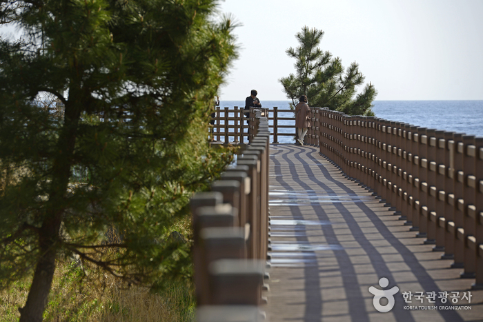 바다향기로는 속초해수욕장에서 외옹치항까지 1.74km에 걸쳐 이어진 이색적인 해안 산책 코스다. 크게 속초해수욕장 구간(850m)와 외옹치 구간(890m)으로 나뉘며 구간마다 서로 다른 분위기를 지녔다. 가볍게 해변을 따라 걷고 싶다면 속초해수욕장 구간이 적합하며 다이나믹한 풍경을 담고 싶다면 외옹치 구간을 추천한다. 외옹치 구간은 수십 년간 민간인 출입이 통제되었던 곳으로 오랫동안 사람 손때를 타지 않은 천혜의 비경을 품고 있다. 드라마 <남자친구> 촬영지로도 유명하다. 나무 데크 탐방로와 흙길을 오가는 산책로를 따라 푸른 바다가 끝없이 이어지며 철썩이는 파도 소리가 청량감을 더한다. 바닷물이 맑고 깨끗해 바닥이 훤히 비칠 정도다. 외옹치 구간은 대나무 명상길, 하늘 데크길, 안보 체험길, 암석 관찰길 4개 테마 코스로 꾸며졌다. 안보 체험길에 둘러쳐진 해안선 경계 철책은 1970년 무장공비 침투 사건 이후 설치했던 것을 일부분 남겨 놓은 것이다. 굴바위, 지네바위 등 해안가에 형성된 기이한 바위들을 관람하는 재미도 쏠쏠하다.