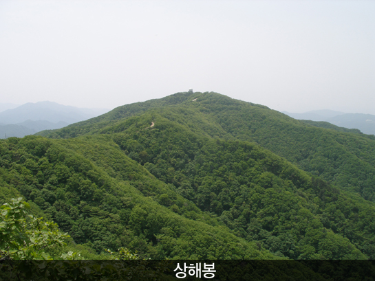 상해봉 1코스 등산하기 적당한 코스며 정상부가 특이하게 암벽으로 이루어져 있음. 봉우리 위는 암석으로서 위험하며 노약자와 어린이는 등반 불가하다.