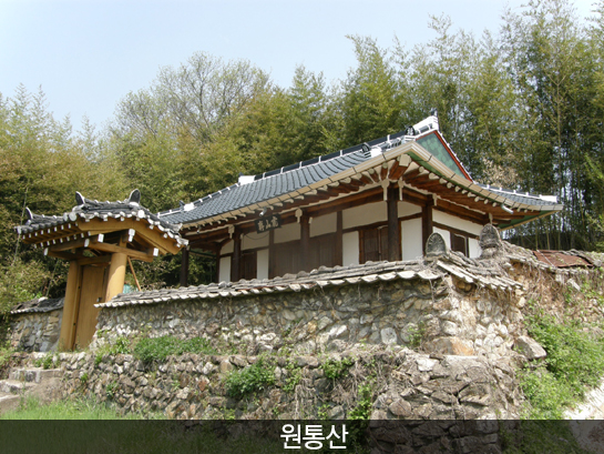원통산(遠痛山)은 높지 않은 산으로서, 북서쪽으로는 회문산과 마주하고 있고, 이산은 금남호남정맥이 성수산으로 북진하기 시작하고 팔공산에서 남서쪽으로 가지를 친 능선 끝머리에 자리 잡고 있다. 원통산은 등산객이 많지 않아 초입부는 길이 선명하지 않아 중간 능선까지 찾아가는 길이 험난하다. 초입부만 잘 찾는다면 중간 정도부터는 숲길의 윤곽이 뚜렷하다. 또 지형도 가파르지 않아 쉽게 오를 수 있는 산이다. 정상에서 지초봉까지 이어지는 코스는 경사가 없어 쉽게 주변 경치를 즐기면서 등산을 할 수 있다. 그런데 지초봉에서 휴양림으로 이어지는 코스는 시작점이 경사가 급해 주의가 필요하다.