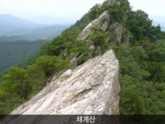 채계산은 여러 이름으로 불리기도 한다. [동국여지지]에서는 화산(華山)으로, 옥천지에는 차계산(次戒山)으로 적혀 있고 또 책과 같이 돌이 쌓여 있다 하여 책여산(冊如山)이라고도 불린다. 또한, 예부터 아미산, 광덕산(일명 강천산)과 더불어 순창의 3대 명산으로 꼽고 있으며 명산답게 산과 관련된 전설이 많이 내려오는 곳이기도 하다. 산 중턱에 큰 바위가 툭 튀어나와 있어 그 밑에 큰 굴이 있는데, 이 굴이 바로 전설에서 전하는 세칭 금돼지굴이다. 채계산 밑 적성강변에 천재지변에 따라 색깔을 달리하는 거대한 흰 바위가 있는데 높이가 6자가 실히 된 데다가 그 형상이 마치 백발노인이 우뚝 서 있는 모습과 같아 사람들은 이 바위를 ‘화산옹’이라 불러오고 있다. 얼핏 보면 늙은 사람과 같다 하여 이름도 사람에 비유하여 ‘화산 늙은이’라고 한 것 같다. 이 화산옹은 이상한 능력을 가지고 있다고 전한다. 그것은 그해 풍년이 들려면 색깔이 희고 아름답게 보이지만 반대로 흉년이 들려면 색깔이 검은색을 띠게 된다. 또 큰불이 난다거나 전염병이 퍼져 인명의 피해가 많은 해는 바위 색깔이 파란색을 띠게 되고 전쟁이 일어나거나 천재지변이 있을 때는 붉은 색깔을 띠게 된다는 전설이 전해져 내려오고 있다. 읍의 동쪽 약 10km쯤 떨어져 있는 이 산은 멀리 장수 팔공산에서부터 뻗어난 줄기가 이산을 이루는데 정상에서 내려다보면 적성강 물줄기가 보여 그 경치를 더해준다. 산 중턱부터 정상부까지 암반으로 이루어져 있어 그 경치가 빼어나다.