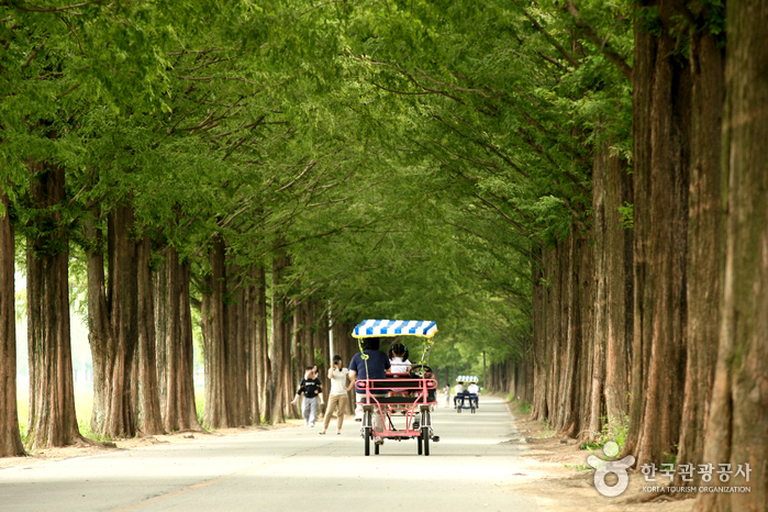 담양 메타세쿼이아(Metasequoia)길은 명불허전 한국을 대표하는 가로수길로 이국적이고 환상적이다. 정갈하게 생긴 메타세쿼이아가 국도변 양쪽에 그림 같이 펼쳐진다. 20m 크기의 훤칠한 아름드리 나무들이 일렬로 질서정연하게 서서 저마다 짙푸른 가지를 뻗치고 있다.