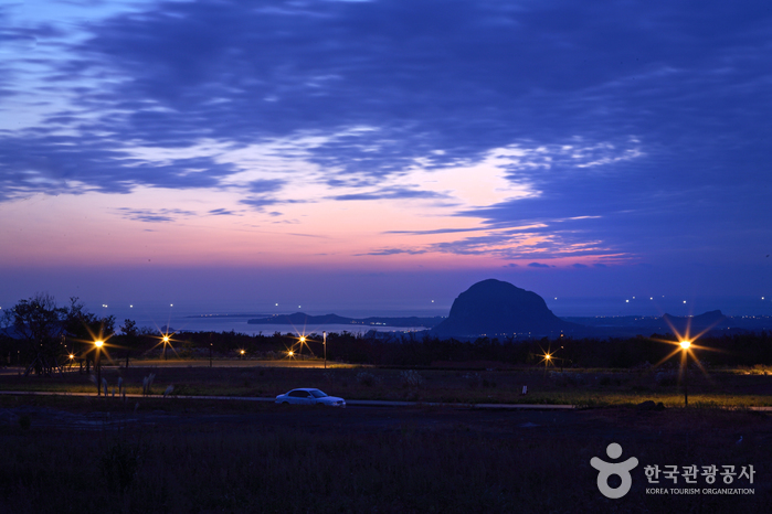 - 코스개요 : 송악산 북쪽에 있는 섯알오름은 작고 나지막한 3개의 말굽형 분화구가 나란히 줄지어 분포되어 있는 곳이다. 높이 약 21m, 둘레 704m, 총면적 29,094㎢인 섯알오름은 아담한 동산과 같은 느낌이지만 이곳은 양민학살터로 아픔이 있는 4.3유적지이기도 하다. 입구에는 학살된 주민들의 추모비가 있으며 꼭대기에는 일제강점기에 설치한 고사포 진지가 있어 한국 근대사의 비극을 전해준다.