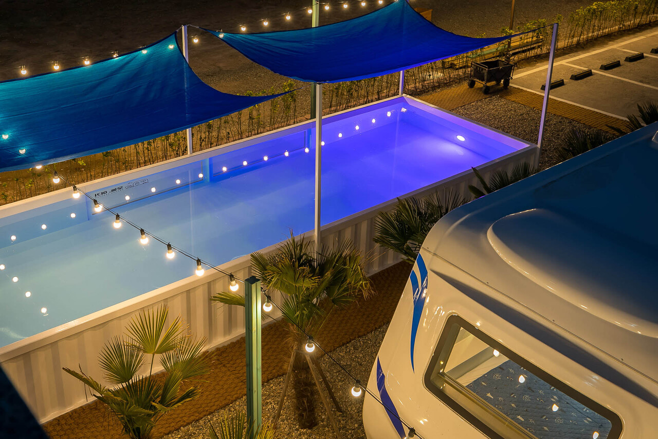 오늘여기 카라반은 포항 호미곶면 다무포 간이해수욕장 앞에 위치하여 자연과 함께하는 카라반 야영장 입니다. 바다뷰/독체 카라반/미온수 수영장/개별바베큐장/ 개별 제빙기/개별정수기/개별스타일러/개별욕실이 완비되어 있습니다. 한적한 바닷가를 산책하듯 거닐수 있는 간이 해변이 있습니다