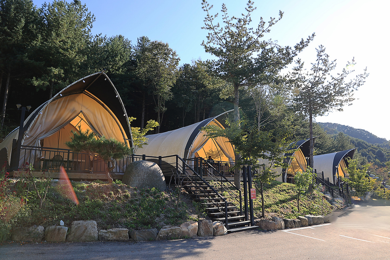 - 글램핑 : 4면 ( 내부시설 : 침대,TV,에어컨,냉장고,유무선인터넷,난방기구,취사도구,내부화장실)