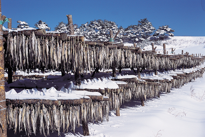 황태는 매서운 겨울철 눈보라와 청정한 봄바람 속에서 말리는 명태를 말한다. 겨울밤이면 영하 10도 이하로 떨어지는 매서운 추위에 명태는 순식간에 얼어붙는다. 낮에는 따스한 햇볕에 녹는다. 이렇게 얼다 녹다를 반복하면서 황태가 탄생한다. 서너 달을 계속 하면 속살이 노랗게 변해 황태라는 이름을 얻는다. 덕장에서는 4월까지 일이 이어진다. 수만 평의 대지 위에 동해에서 갓 잡아온 명태를 빼곡히 널어 말리는 황태덕장에 들어서면 강원도 산간 마을의 겨울 정취를 한껏 느낄 수 있다. 국내의 황태덕장 명소는 대관령 아래 평창군 도암면 횡계리 일대, 진부령이 가까운 인제군 북면 용대리, 고성군 거진항 주변 등이다. 12월이면 통나무를 이어 덕장을 만들고 1월 초부터 본격적으로 황태를 말리기 시작한다. 황태를 만드는데 가장 중요한 구성요소는 겨울 추위와 봄바람이다. 명태가 언 상태를 15∼20일은 유지해야 황태의 모양이 갖춰진다.