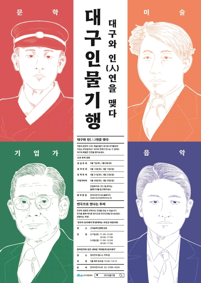 4월 30일 역사학자 심용환과 함께하는 '대구인물기행 토크콘서트' 행사를 시작으로 5월부터 6월 초까지 미술, 음악, 문학, 기업가 등 다양한 테마의 대표 인물 투어 프로그램이 진행된다. 4월 20일부터 '한국자전거나라 홈페이지(http://koreabiketour.kr)에서 참여 신청 가능하다.