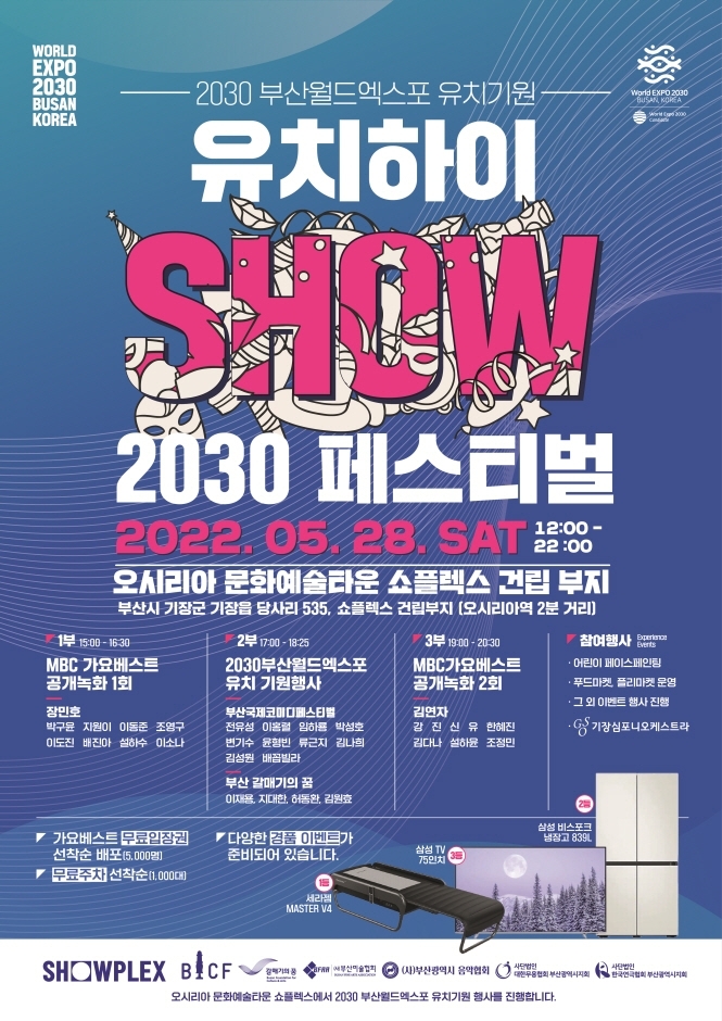2022년 5월 28일 토요일, 2030 부산세계박람회 유치 기원 시민 화합 축제 '유치하이SHOW 2030 페스티벌'이 개최된다.