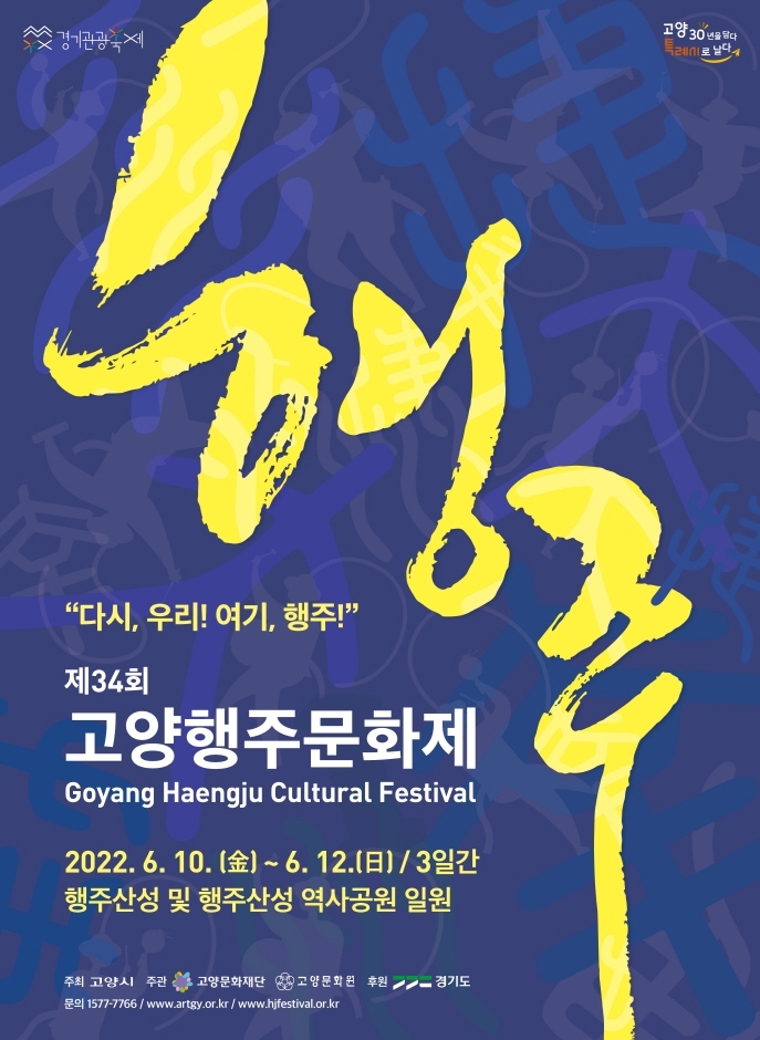 2022년 고양 특례시 원년을 맞이한 고양시는 제34회 고양행주문화제의 성공적인 개최를 통해 대한민국 대표 문화예술 도시로서 우뚝 서고자 한다.