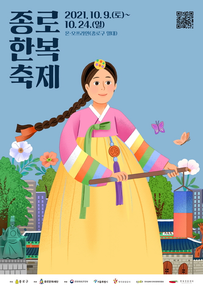 종로한복축제는 <종로에 한복 꽃이 피다>를 주제로 온오프라인에서 즐길 수 있는 축제다.