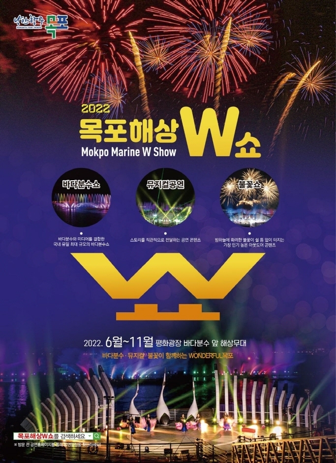 목포해상W쇼는 가족의 시선에서 바라본 아름다운 목포의 이야기를 '목포의 눈물'을 비롯한 지역상징 노래와 창작곡, 기성곡으로 스토리텔링한 창작뮤지컬 공연에 맞춰 바다분수쇼와 불꽃전문팀이 연출하는 화려하고 웅장한 불꽃으로 구성된 공연이다.