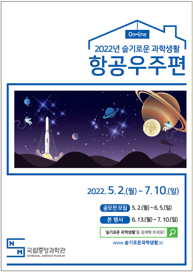 다채로운 프로그램으로 남녀노소 즐길 수 있는 <2022년 슬기로운 과학생활 항공우주편>에 참여 하시어 유익한 시간 보내시길 바란다.