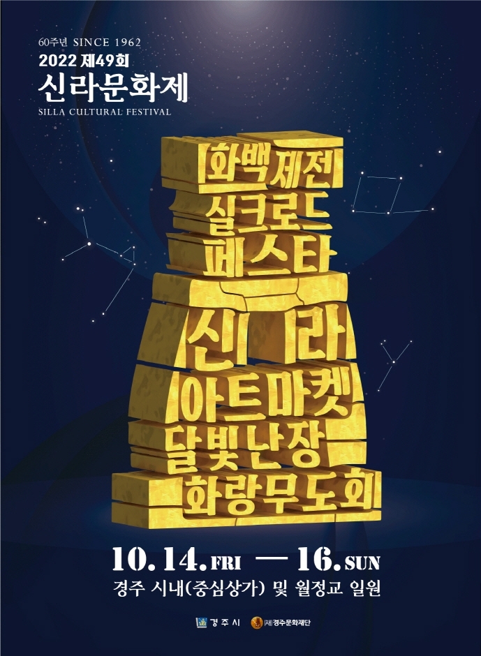 2022 제49회 신라문화제는 신라의 태동을 알리는 화려한 퍼포먼스가 펼쳐질 화백제전부터, 도시의 거리, 골목, 가게에서 펼쳐지는 수많은 아티스트들의 화려한 거리예술축제인 실크로드 페스타까지!