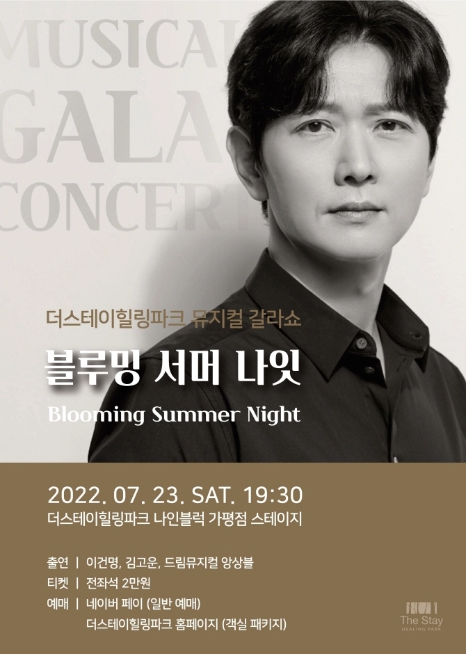 여름의 절정에 펼쳐지는 뮤지컬 갈라쇼! 초등학생부터 성인까지 함께 관람할 수 있는 이번 '블루밍 서머 나잇' 갈라쇼는 '노트르담 드 파리’, ‘오페라의 유령’, ‘지킬앤하이드’, '맘마미아' 등 다양한 작품들로 구성됐으며, 무더위를 잊게 만들 뮤지컬 배우들의 신나는 춤과 노래가 어우러진 공연이다. ‘삼총사’, ‘프랑켄슈타인’, ‘그날들’, ‘잭 더 리퍼’ 등 내로라하는 다수의 뮤지컬에서 주연을 맡은 인기 뮤지컬 배우 이건명, '명성황후', '영웅', '엘리자벳' 등에 출연했던 뮤지컬 배우 겸 팝페라 가수 김고운의 수준 높은 무대가 펼쳐져 관객들에게 잊지 못할 시간을 선사할 것이다.