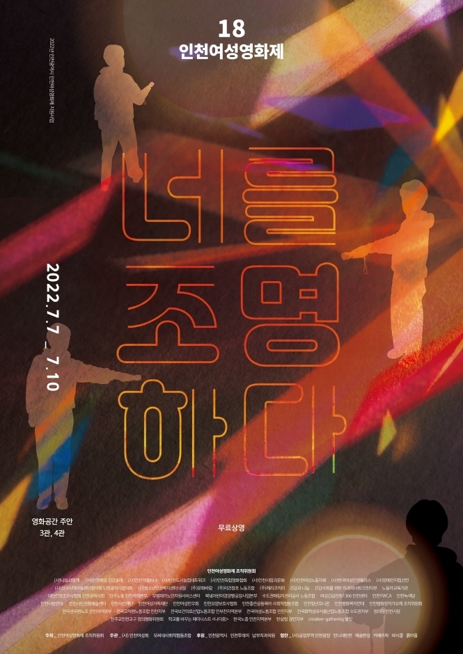 18회 인천여성영화제 슬로건 <너를 조명하다>는 배제되고 지워지는 존재들이 서로를 조명하며 서로의 존재를 드러내고 그 힘으로 오늘을 살아내자는 의미를 담았다.