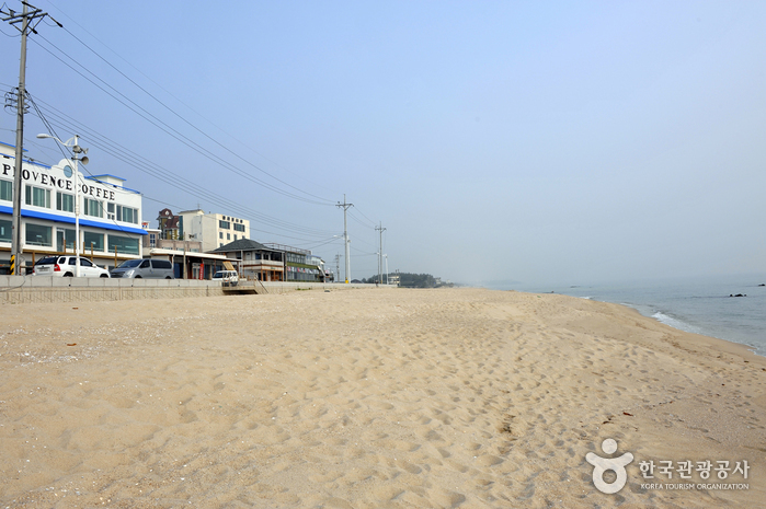 사천면 하평리에 있으며 길이 200m, 4,000㎡의 백사장이 있다. 하평은 초당 허엽의 차남 허봉이 이곳에 살았다고 하여 그의 호를 따서 하평동(荷坪洞)이라 했다. 뒷불해변과 이어지는 하얀 모래밭과 뒤로는 해송 숲이 넓게 펼쳐져 있는 곳으로 조용하고 깨끗하여 가족단위로 많이 찾고 있다. 해변 앞에는 해다리바위(물개,海狗)가 있는데 옛날에 물개들이 이 바위에서 많이 살았다고 하여 붙여진 이름이며 그 울음소리가 민가에 까지 들렸다고 한다. 민박을 이용할 수 있고 횟집들이 많아 싱싱한 회를 맛볼 수 있다.