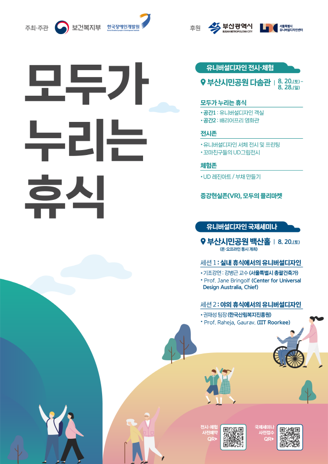유니버설디자인 국제세미나는 호주의 Jane Bringolf 교수(Center for Universal Design Australia, Chief), 인도의 Raheja, Gaurav. 교수(IIT Roorkee) 및 서울특별시 총괄건축가인 강병근 교수, 한국산림복지진흥원의 권재성 팀장이 연사로 참석한 가운데, 모두가 누릴 수 있는 유니버설디자인 휴식과 여가에 대한 주제로 발표할 예정이다. 부산시민공원 백산홀에서 8월 20일(토) 10:00부터 시작하며 온·오프라인 동시 생중계를 진행한다. (https://www.koddi.or.kr) 홈페이지에서 사전 접수 시 추후 생방송 링크에 접속하여 참여가 가능하다.
