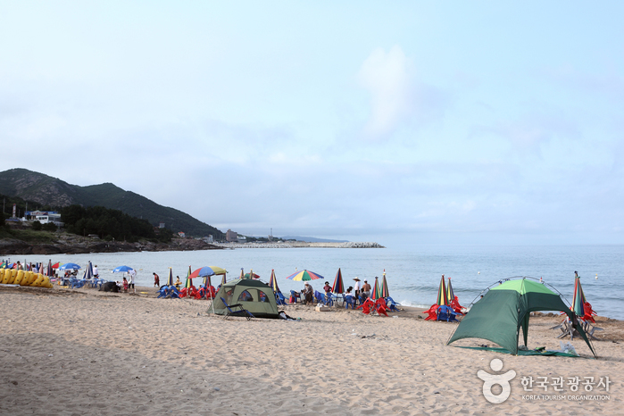 포항시내에서 북쪽으로 20km 가량 떨어진 해수욕장이다. 백사장 길이 400m, 폭 100m, 평균 수심 1.5m의 작은 곳이지만, 나무가 많고 물이 맑으며 주위 경관이 좋아 가족과 함께 피서를 즐기기에 좋은 곳이다. 송라면 보경사 12폭포가 인근에 있다.