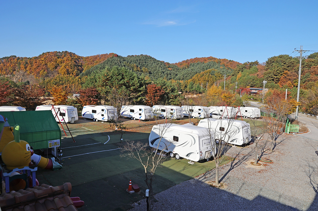 - 카라반 : 12면 ( 내부시설 : 침대,TV,에어컨,냉장고,유무선인터넷,난방기구,취사도구,내부화장실)