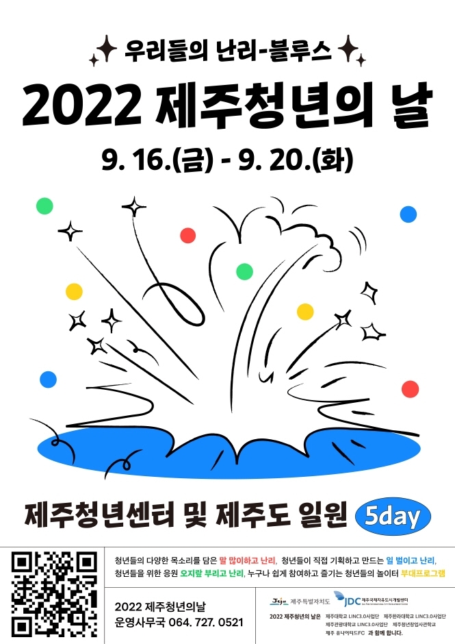 - 주최자 연락처 : 2022 제주청년의 날 운영사무국 064. 727. 0521