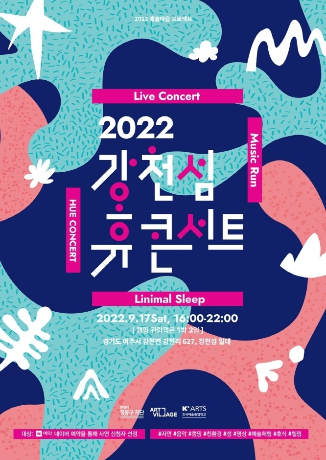 현대차 정몽구 재단이 주최하고, 한국예술종합학교가 주관하며, 경기도 여주시가 함께하는 ‘2022 예술마을 프로젝트: 강천섬 휴[休]콘서트’가 오는 9월 17일(토) 경기도 여주시 강천면 강천리 627, 강천섬 일대에서 열린다.