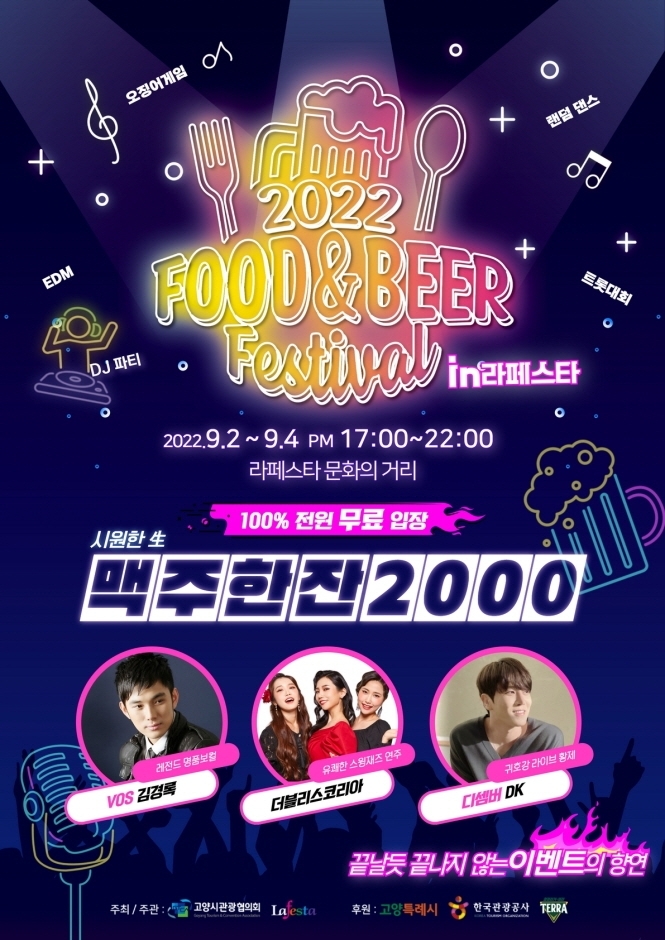 2022 푸드앤비어 페스티벌은 시민, 지역상권과 함께 즐기는 고양시 종합 축제로 고양시민들에게 위로와 힐링의 시간을 마련하는 주민중심형, 지역상권연계형 행사이다.